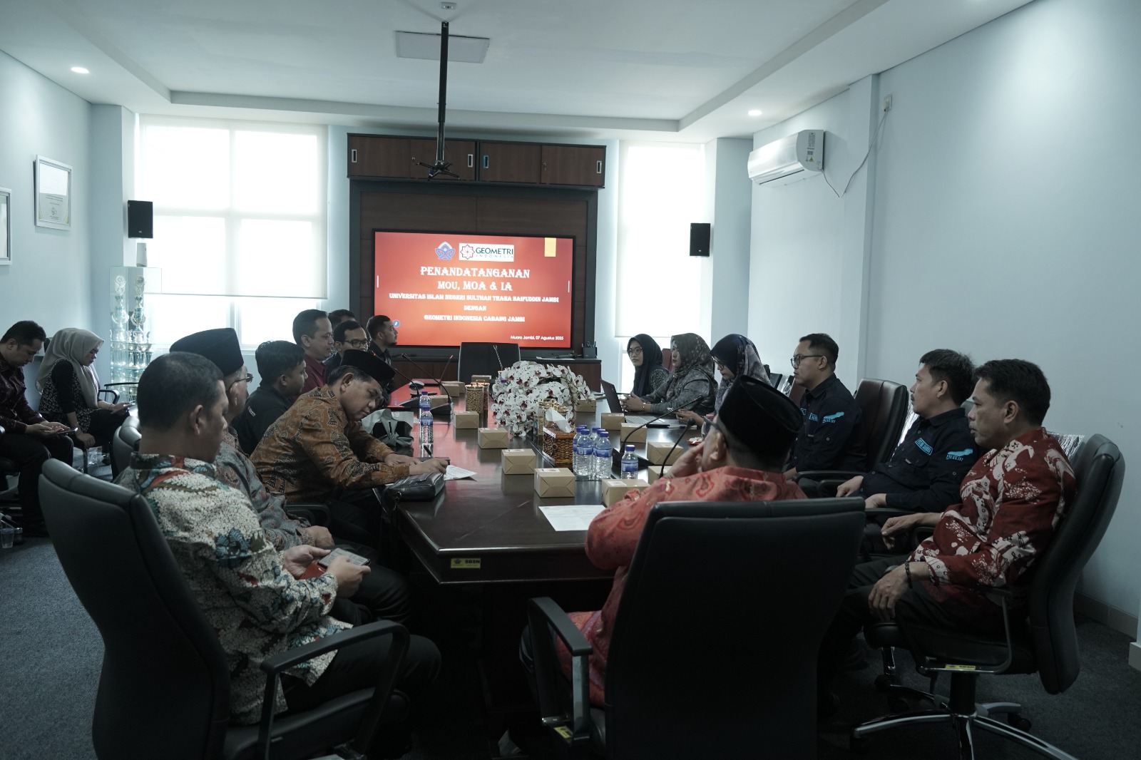 Jambi, 07 Agustus 2025 – Universitas Islam Negeri (UIN) Sultan Thaha Saifuddin Jambi memperkuat kolaborasi dengan dunia industri melalui penandatanganan Nota Kesepahaman (MoU) dengan PT. Geometri Indonesia. Acara berlangsung di Ruang Rapat Lantai Tiga Gedung Rektorat UIN STS Jambi pada Kamis, 07 Agustus 2025.